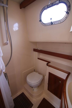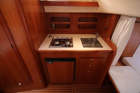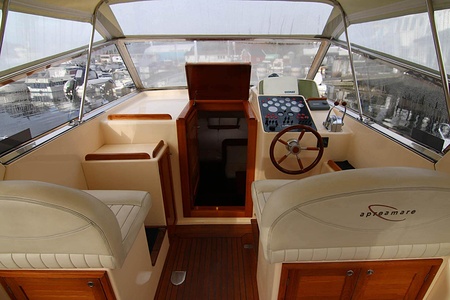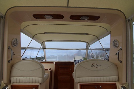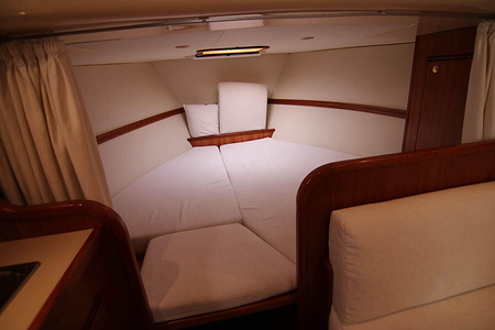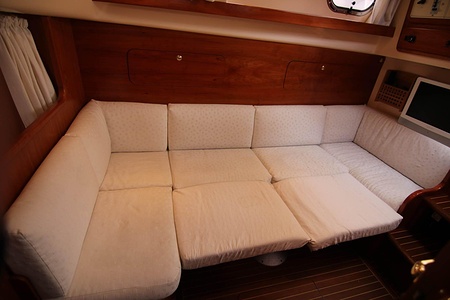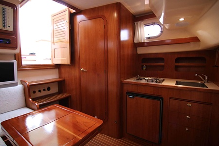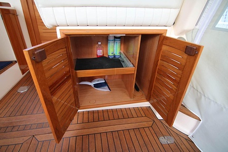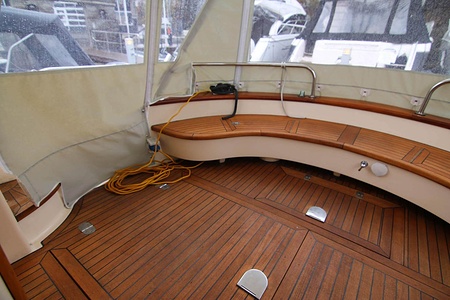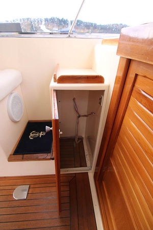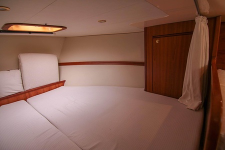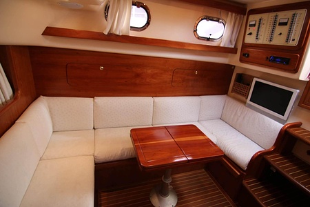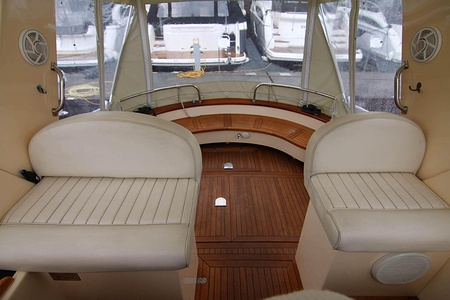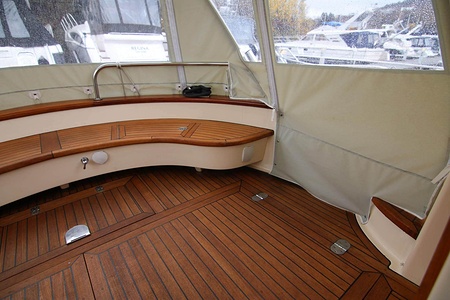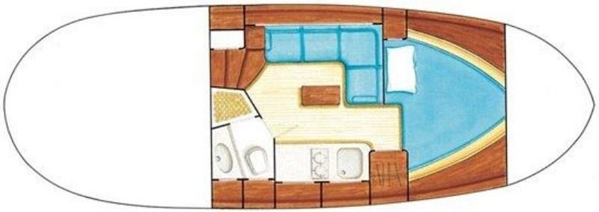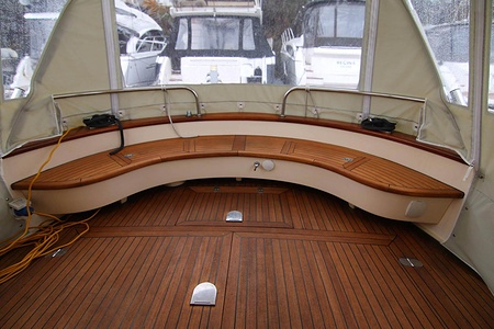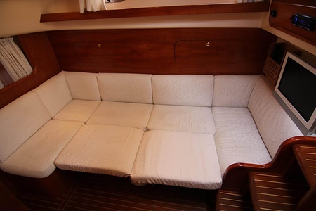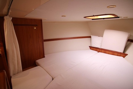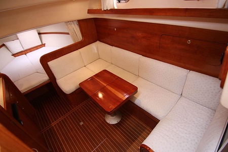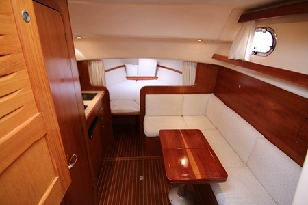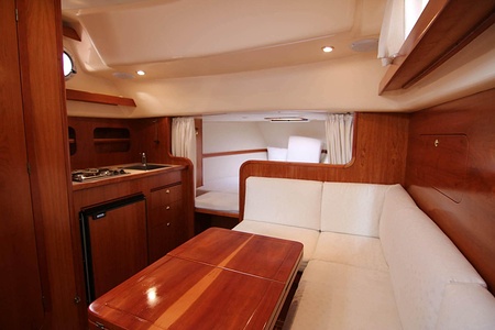 Sosialt og romslig teaklagt akterdekk med teakbenk. Mye lagringsplass i cockpit og god tilgang til motorer. Teaklagt dekk rundt hele båten og en fantastisk sofa på fordekk. Innvendig har man en stor salong som kan gjøres om til en dobbeltseng. I tillegg har man dobbeltseng i baugen som gir totalt 4 sengeplasser.