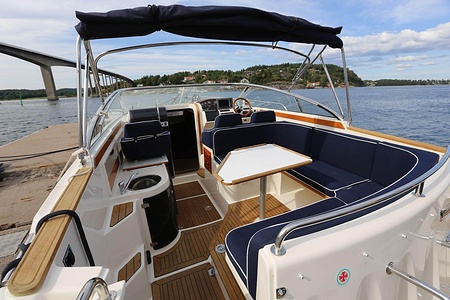 Svenskägd, använd på svenska västkusten. Vinterförvarad inomhus; bottenmålad, polerad, full motorservice inkl byte av remmar, full drevservice inkl byte av bälgar.