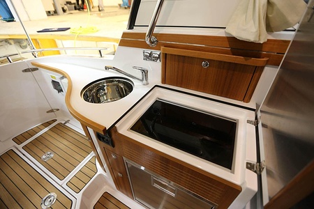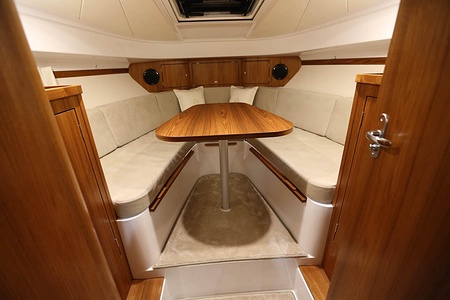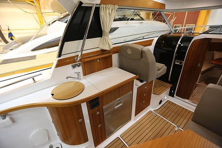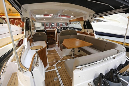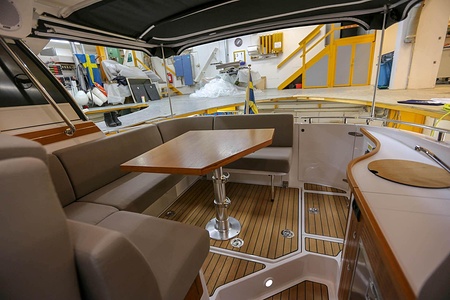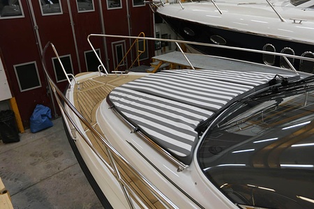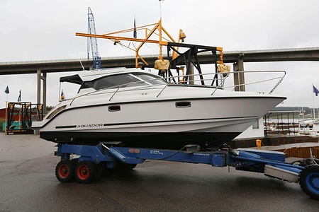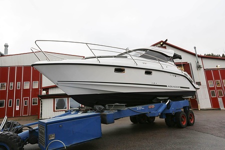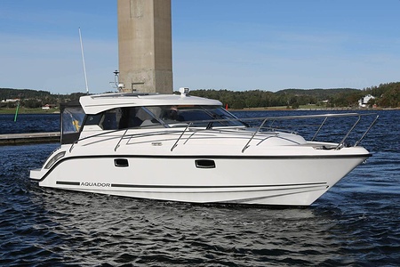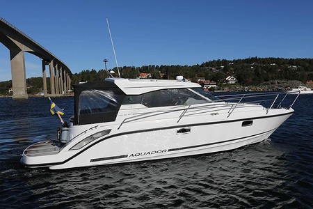 Välutrustad Aquador 30 HT i nyskick – en pragmatisk, hardtop båt där det är tryggt och enkelt att röra sig ombord. Den prisbelönta 30HT är välplanerad för sex personer, stora utrymmen, separat akterkoj och med sin generöst tilltagna badbrygga den perfekta familjebåten. Med den nya, ljusa inredningen i vaxad teak i kombination med Aquadors tidlösa design känns denna båt både klassisk och modern på samma gång. Den stora U-soffan i aktern rymmer även det stora sällskapet men går även att bädda upp till en stor solbädd eller extrasäng. Kapellet stuvas snabbt undan genom att den övre kapellbågen skjuts in i hardtopen.