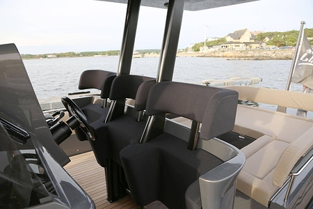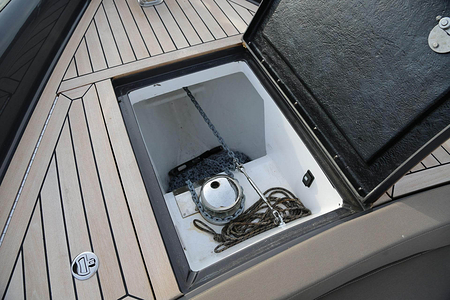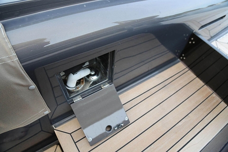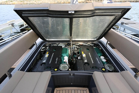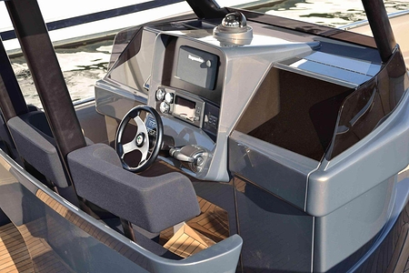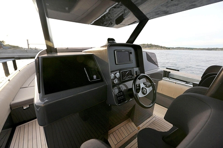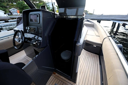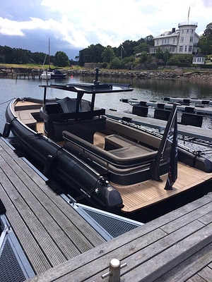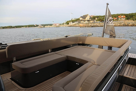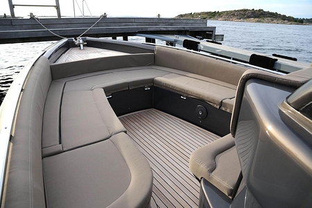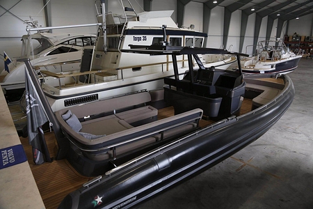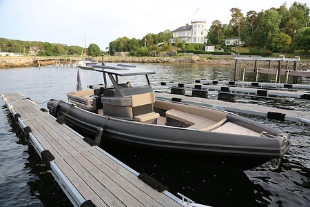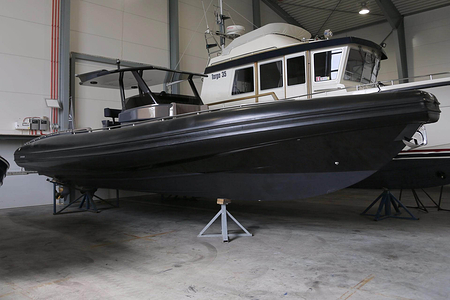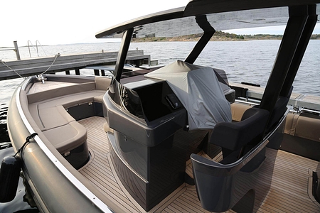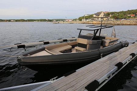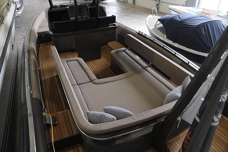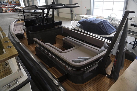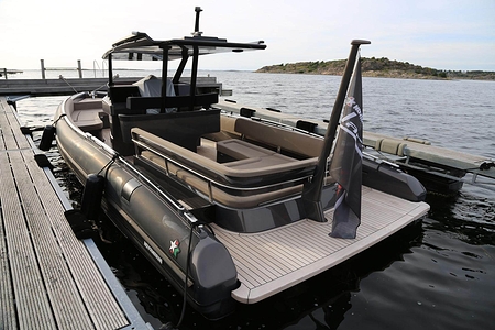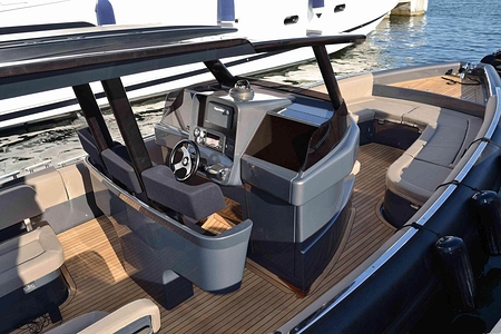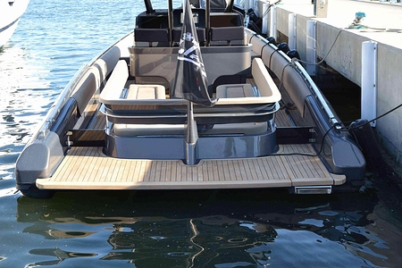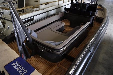 Awesome, very stable, RIB made in Italy. Lovely social spaces with sofas fore and aft. Separated WC. Tubes with foamed closed cells. Twin inboard diesel engines.