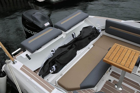 Flipper 640 DC är en suverän daycruiser för alla som använder båten för dagsturer och kortare övernattningar och kombinationen utombordare är miljömedvetet och rätt. Anledningen är att båten blir lättare och roligare att köra, den blir mer bränsleekonomisk och det blir mer plats inne i båten eftersom hela motorpaketet har flyttats ut. För den som vill traila båten är också utombordaren ett självklart val.