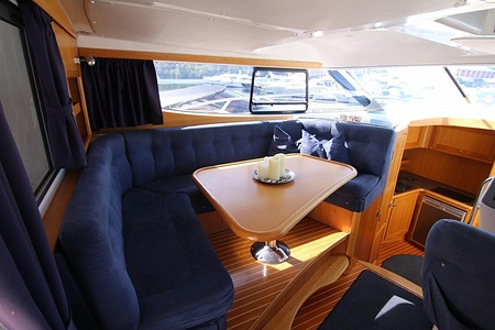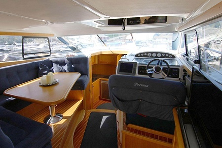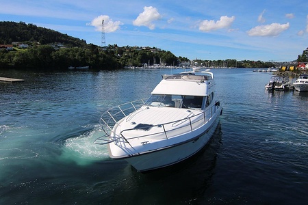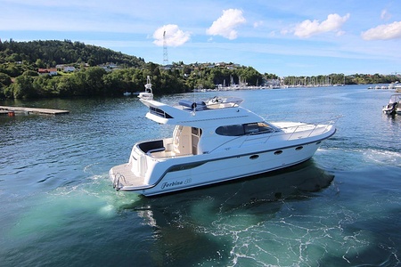 Romslig og fin Forbina 40 til salgs for kunde. Registrert i skipsregisteret. Her får man en fin båt med plass til hele familien for fine turer på sjøen. Fin familiebåt med overnattingsplass til 6 personer. Her har man en fin plass på akterdekk. I tillegg til den faste sofaen så er det god plass til et bord og løse stoler. Inne i salongen har man eget kjøleskap og en sittegruppe med god plass og bra utsyn. Romslig og praktisk pentry med kjøleskap, koketopp og stekeovn. To lugarer og en stikk-kabin sørger for godt med sengeplass, totalt 6 stk.