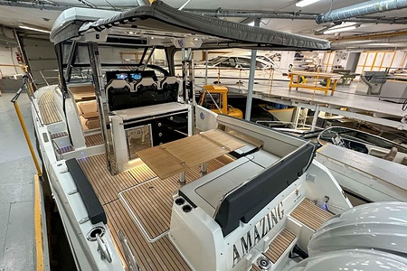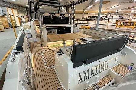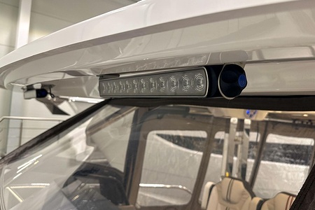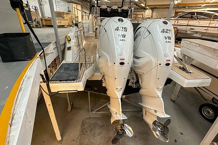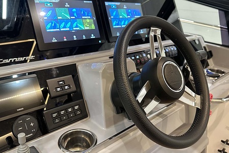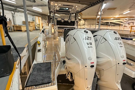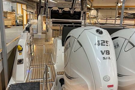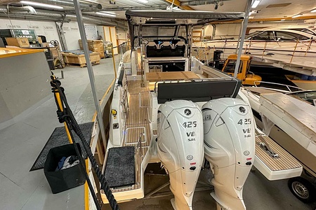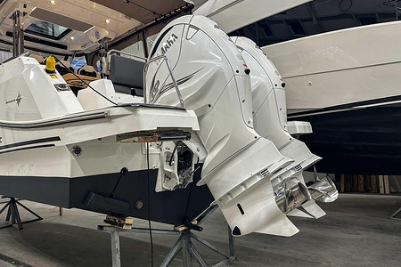 Unikt udstyret Cap Camarat 10.5 Serie 2 til salg! I modsætning til mange lignende både i Europa, som ofte er udstyret med de mindre V6 300 hk-motorer, har vores båd den ultimative drivlinje – dobbelte Yamaha V8 XTO 425 hk med joystickstyring. En kombination der gør båden til en kraftfuld, smidig og tryg søbåd under alle forhold.
