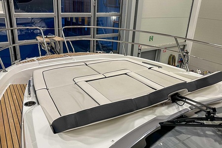 • Saloon and cabin upholstery in PVC Marlin Pure White & Jumbo Pure fabric
