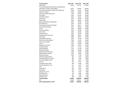 • Protective covers: dashboard, pilot seat, galley, aft and forward benches