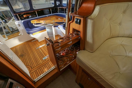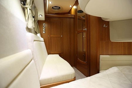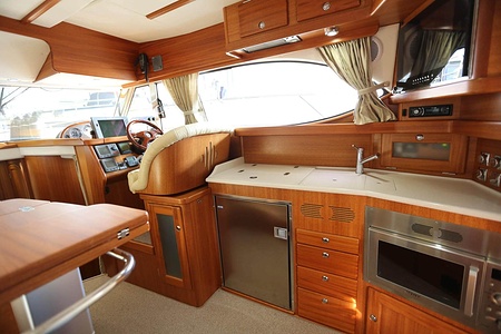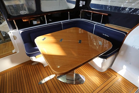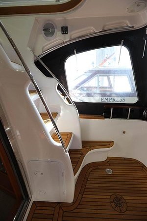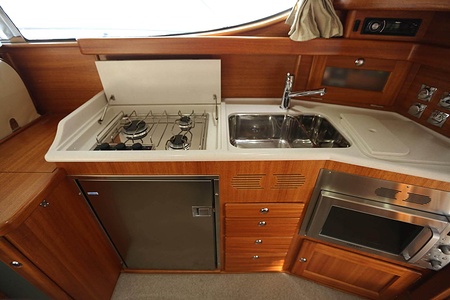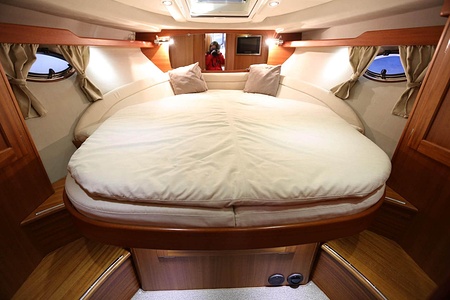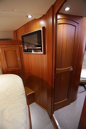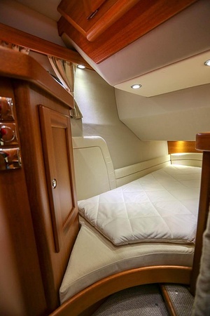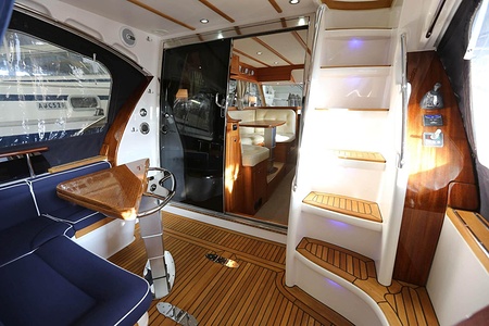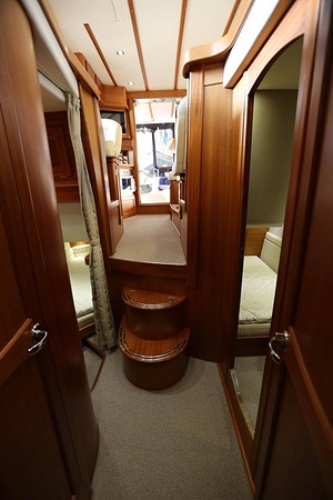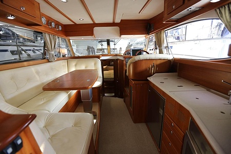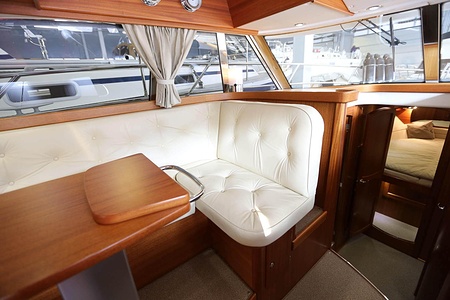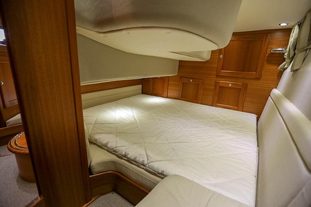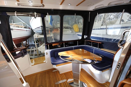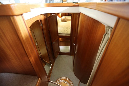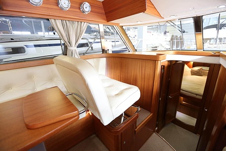 Välskött NordWest 370 Flybridge med IPS och joystick. Layout med tre kabiner, fem bäddar och WC. Vändbar passagerarsofa i framkant på salongssoffan. Pentry på styrbord sida i salongen.