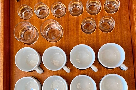 Två badrum med duschkabin, elektriska toaletter, Corian-detaljer & speglar