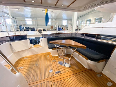 Svenskbyggd kvalitetsbåt NordWest 420 Flybridge till salu för kunds räkning. Utrustad med IPS 600, med omklädda dynor i salong och Antracitgrå dynor ute.