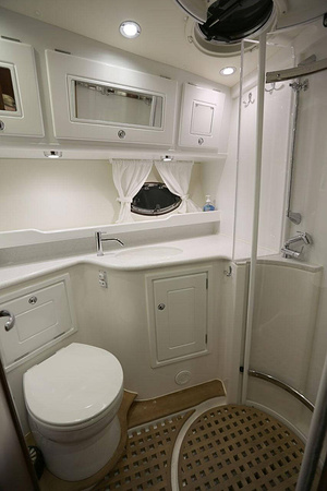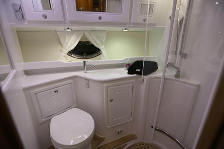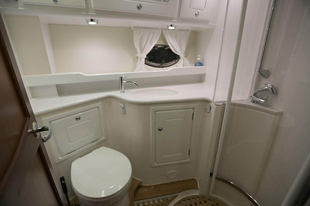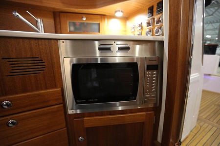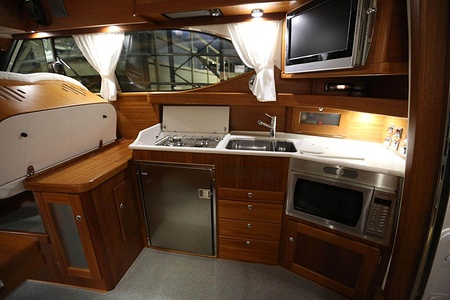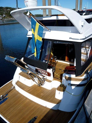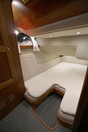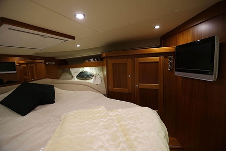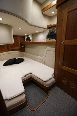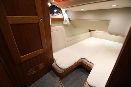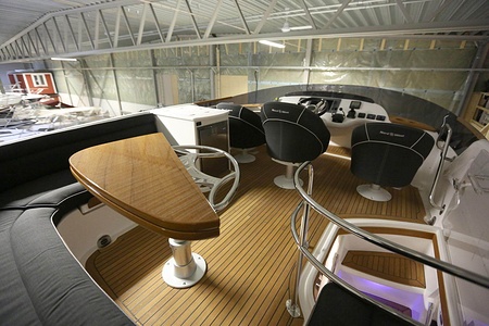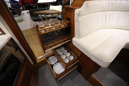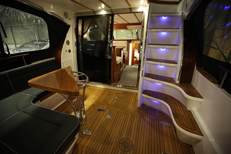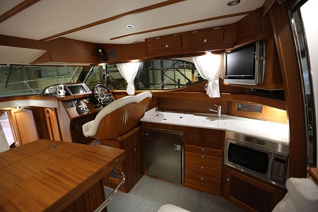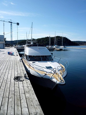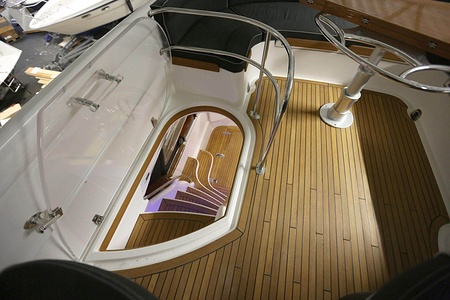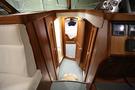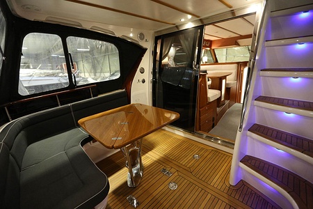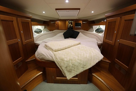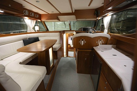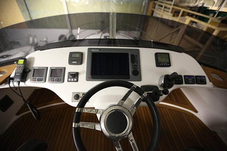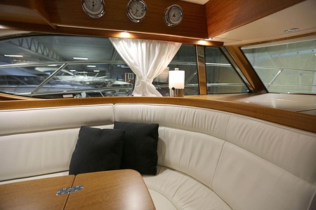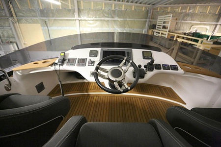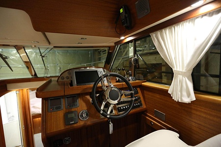 Nord West 420 has been awarded Motor Boat of the Year both in 2007 and 2008, in the category “flybridge boats up to 50 ft”. The boat is equipped with IPS and joysticks. The fabrics inside are light, for example white leather in the saloon.