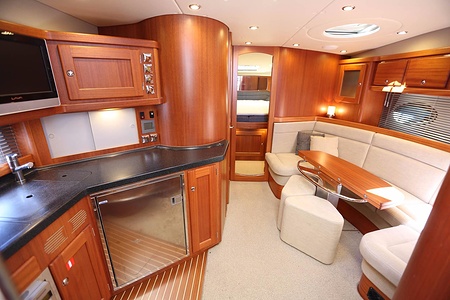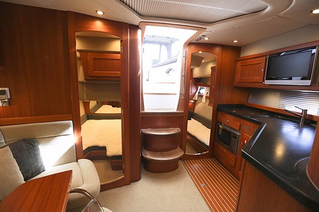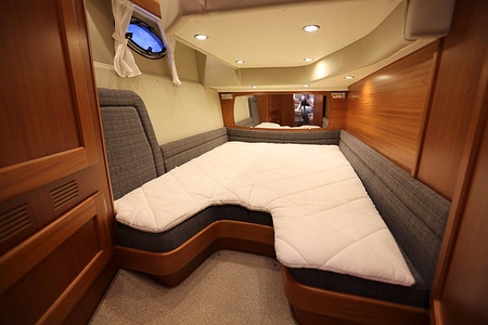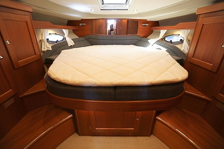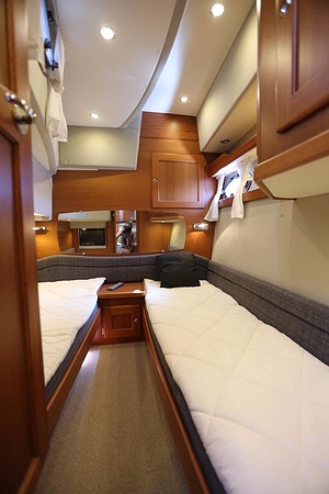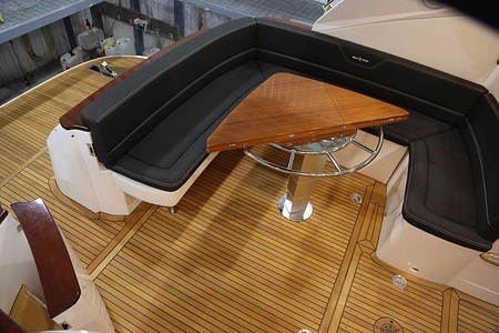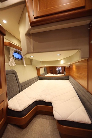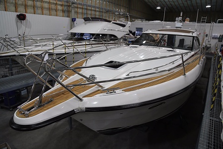 NordWest 430 Sporttop är en daycruiser med fantastiska sjöegenskaper, joystick för trygg tilläggning och bekvämt elektrisk kapelltak. Tre dubbelkabiner och WC med duschkabin. Endast brukad i Sverige. Rekonditionering och full motor- och drevservice ingår.
