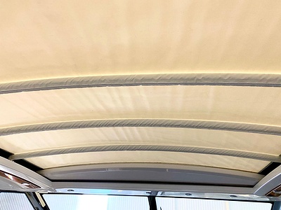 Blå textilier i kabinerna