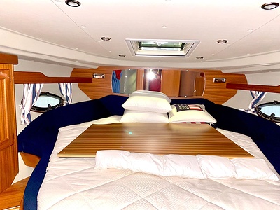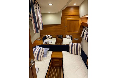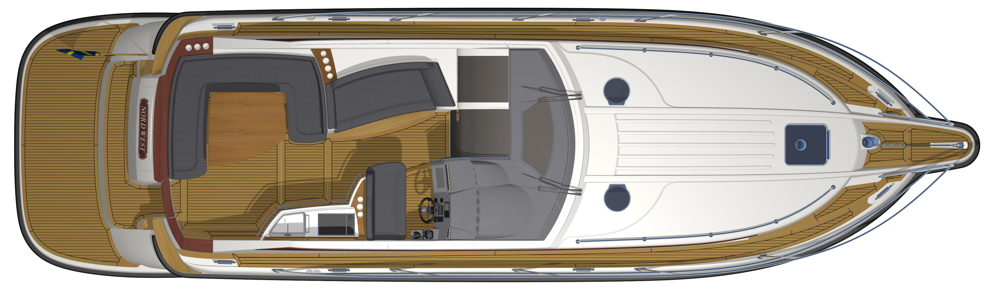 Vi har fått in en Nord West 430 SportsTop, årsmodell 2013, med IPS 600, dubbla joysticks och Dynamic Positioning System. Layout med tre dubbelkabiner plus bäddbar salong och ett badrum.