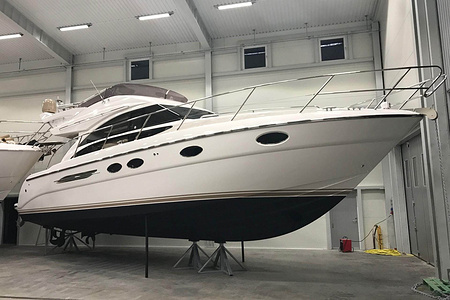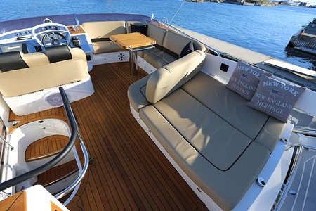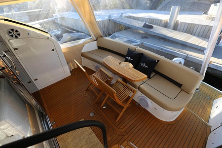 Denna Princess 42 Flybridge har under vintern 2016/17 fått omfattande uppgradering med nya dynor, belysning, stereoanläggning, navigation mm.