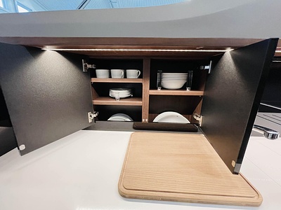 Valnötsinteriör, mattlackerad (durken i pentry är i valnöt som standard)