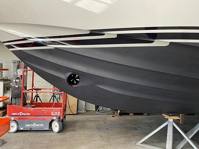 Vit (med mörkblå vattenlinje, svart bottenfärg, skrov och badplattformsskydd är vit med rostfritt inlägg)