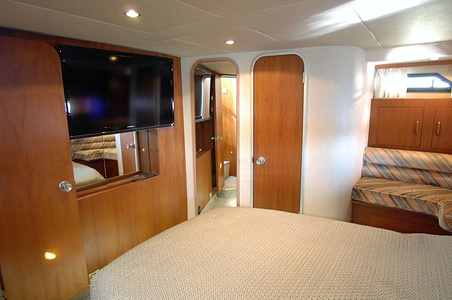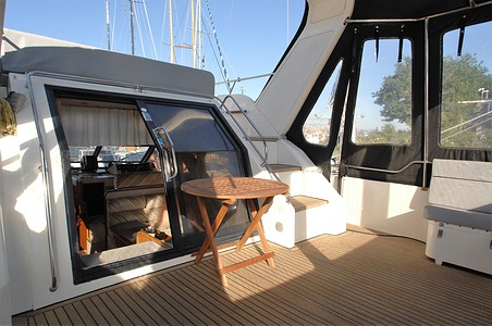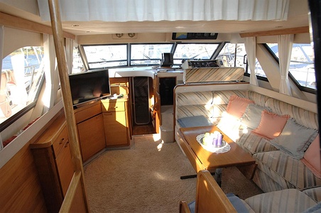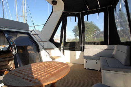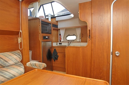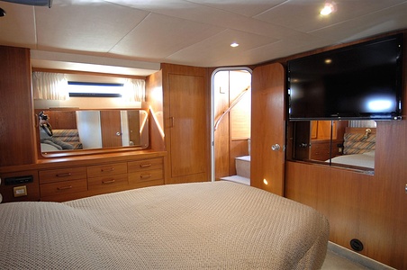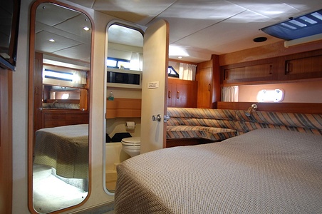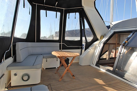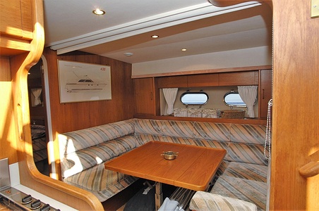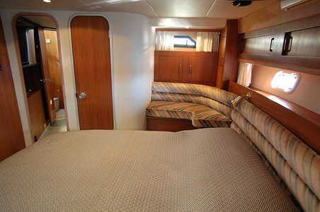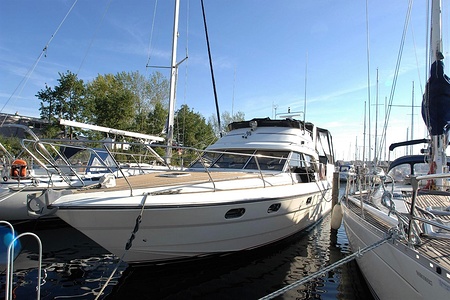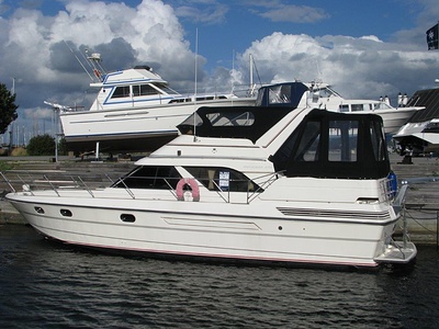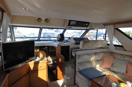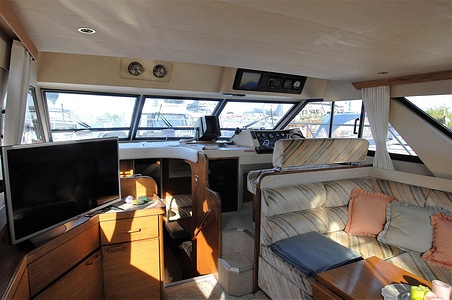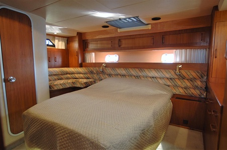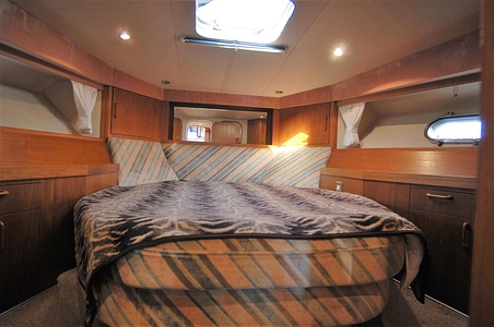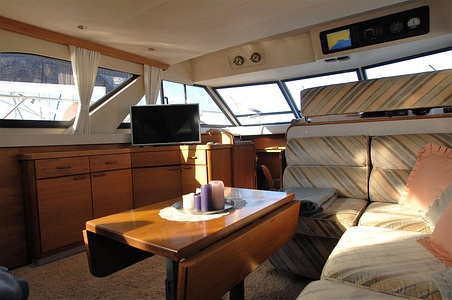 Fin og rummelig Princess 435. Meget god stand for årgangen og løbende vedligeholdt af autoriseret Volvo værksted. Sidste Princess model der blev bygget med stor agterkabine. Indretning med salon, 2 soveværelser, stort galley og et bad samt skab i tidligere bad. Moms betald i EU