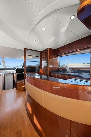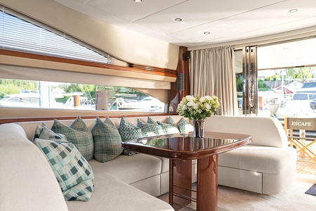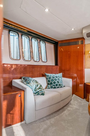Men det er ikke bare ytelsen som gjør Princess 67 Flybridge til en ekte perle. Båtens elegante design vil garantert fange oppmerksomheten til alle som ser den. Med slanke linjer, forseggjort håndverk og en imponerende flybridge som gir en panoramautsikt over havet, er denne båten en visuell fest. Den romslige dekksplassen gir rikelig med plass til avslapning og underholdning, og det luksuriøse interiøret oser av klasse og stil.
