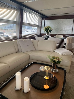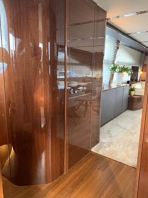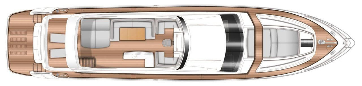• GRP flybridge hardtop featuring electric opening section in soft fabric (includes lighting)