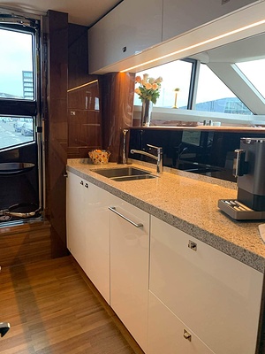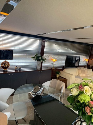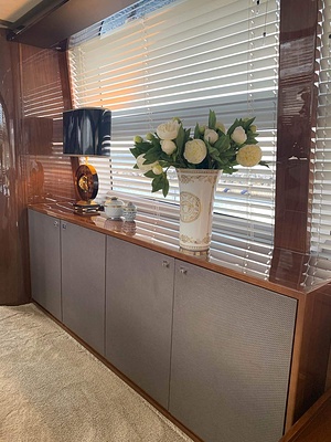 • Flybridge entertainment system linked to saloon audio system, with local control