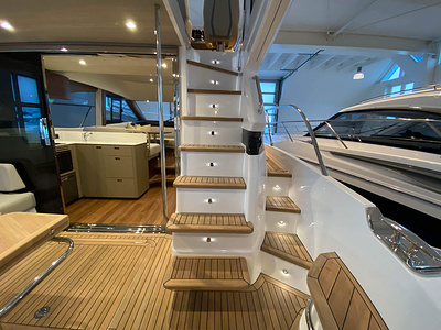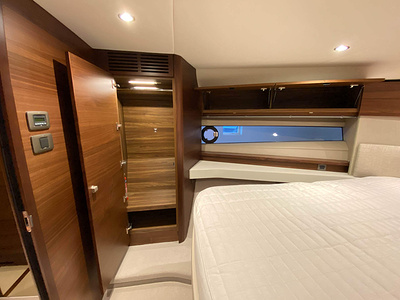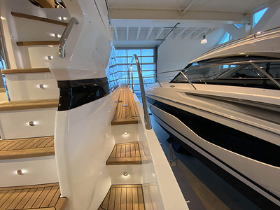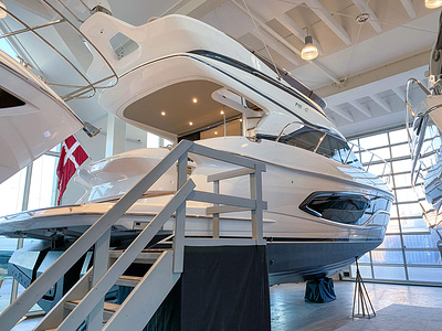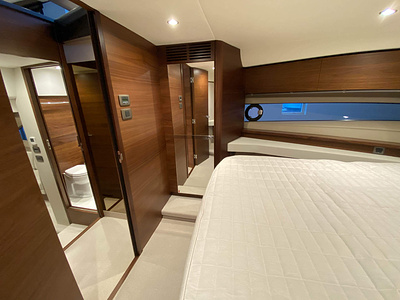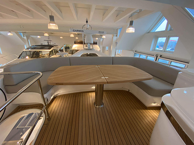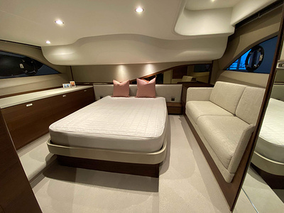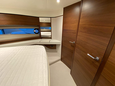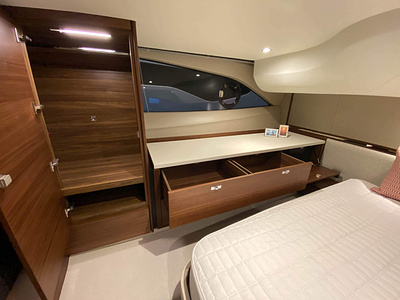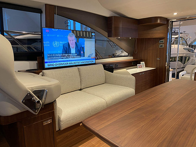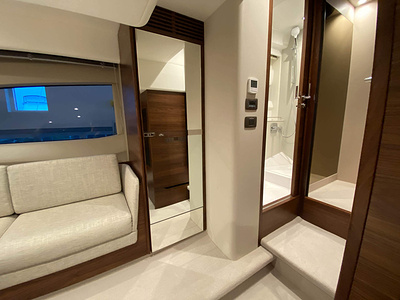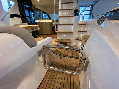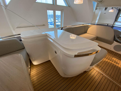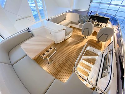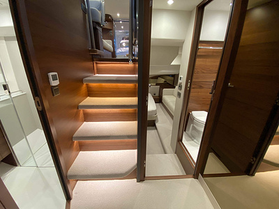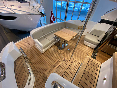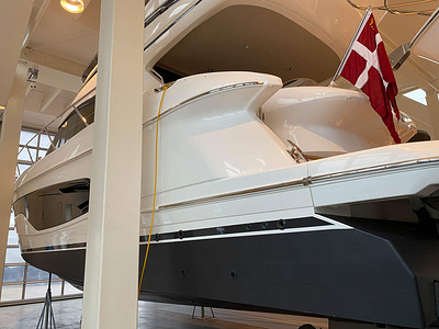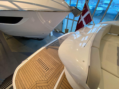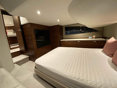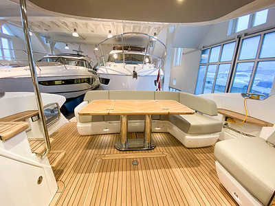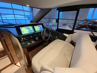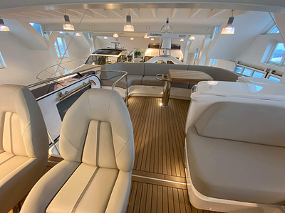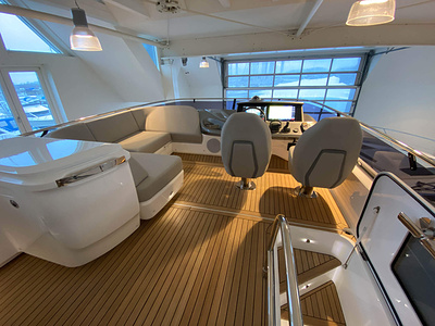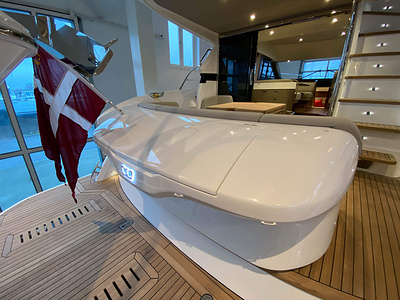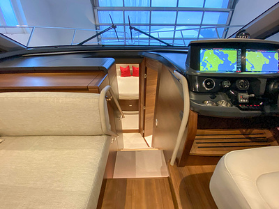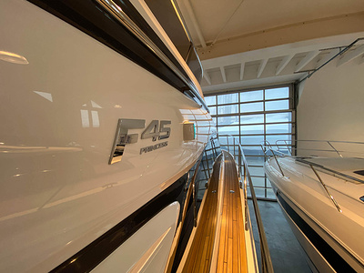 Vi har en fabriksny Princess F45, årsmodell 2021, i våres utstillingshall i Greve Marina, udrustet med 2 x IPS med joystick-styring, Volvo Shadow Drive, sænkbar badeplatform, generator, automatisk trimplans system og Volvo Penta Glass Cockpit navigationssystem. Layoutet har pantry agten i salonen, for kabine og center kabine med hver sit badeværelse samt salon med mulighed for opredning.