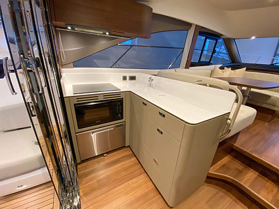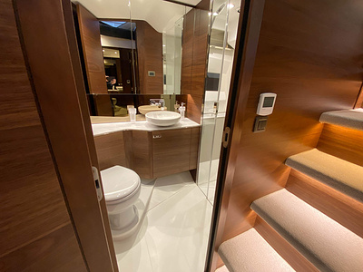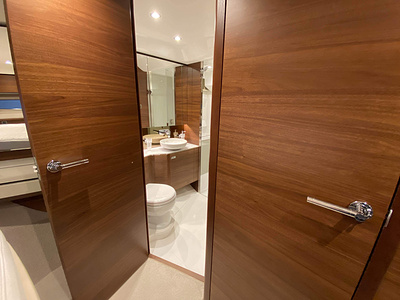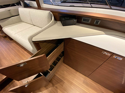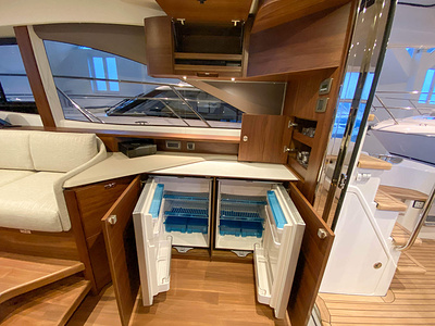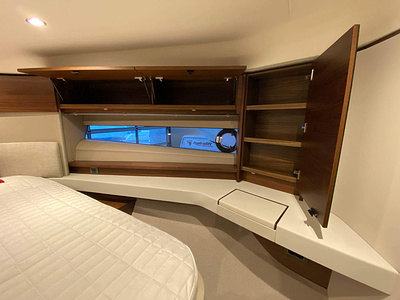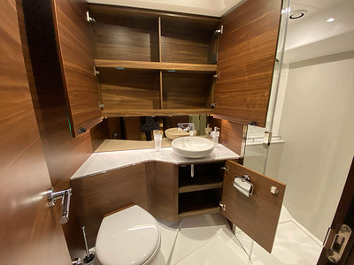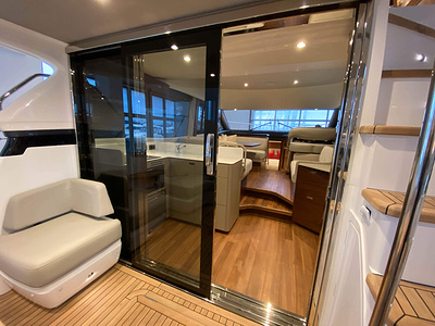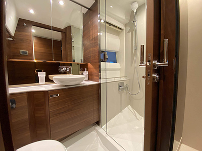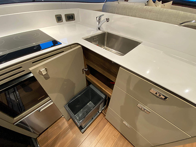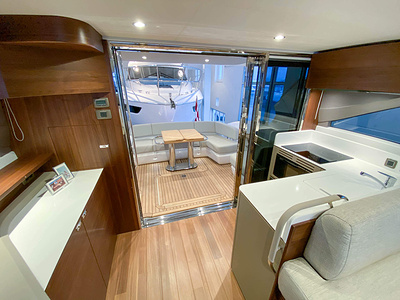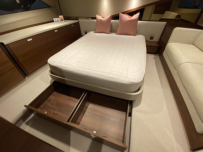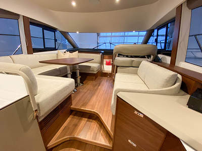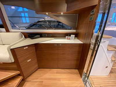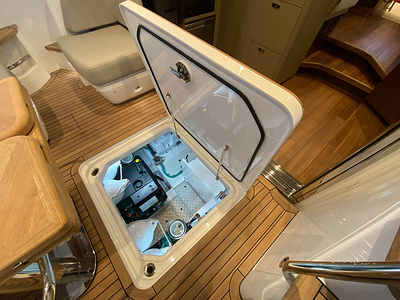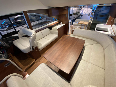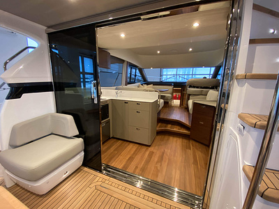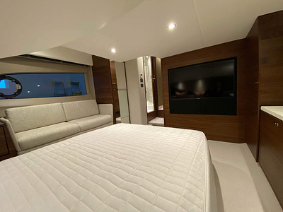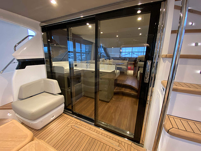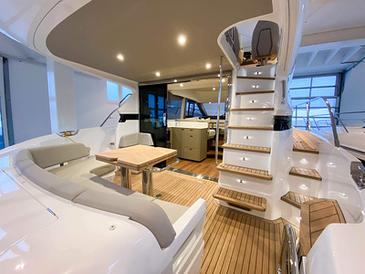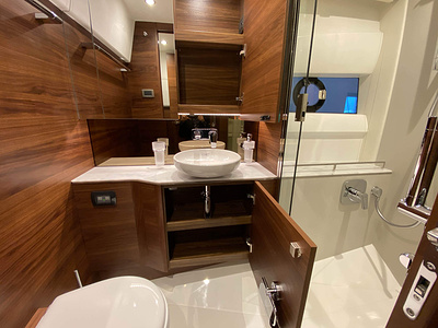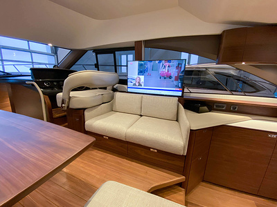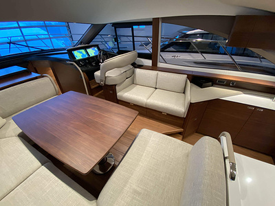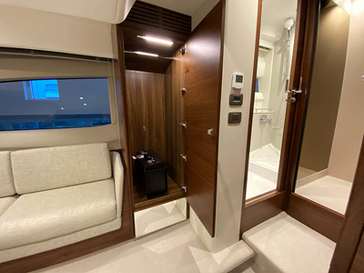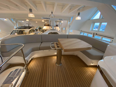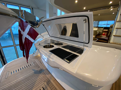 Vi har en fabriksny Princess F45, årsmodell 2021, i våres utstillingshall i Greve Marina, udrustet med 2 x IPS med joystick-styring, Volvo Shadow Drive, sænkbar badeplatform, generator, automatisk trimplans system og Volvo Penta Glass Cockpit navigationssystem. Layoutet har pantry agten i salonen, for kabine og center kabine med hver sit badeværelse samt salon med mulighed for opredning.