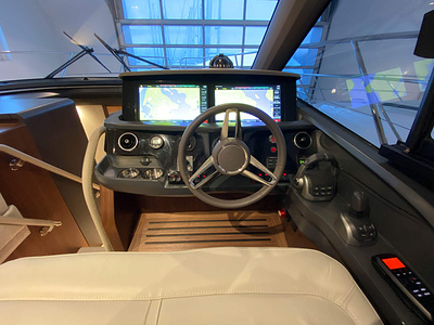 Volvo/Garmin 16" multifunktionsdisplay på nedre och övre förarplats med GPS/kartplotter, ekolod, logg, tripp, motorinstrumentering inkl bränsleförbrukning och autopilotkontroll