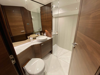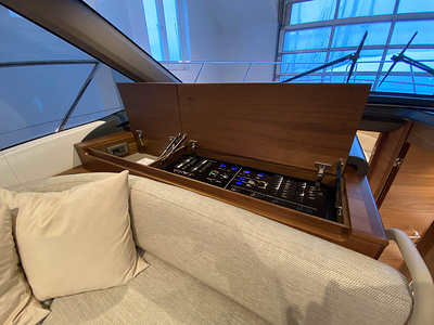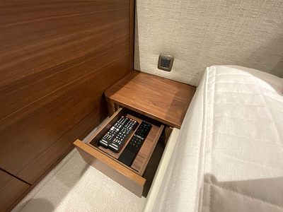 Masterkabin – 40" UHD LED TV med Naim Uniti Atom audio system med Bluetooth, multi-zone med streaming och app. UHD Blu-ray CD/DVD spelare kopplad till vattentäta (2) högtalare (Bowers & Wilkins) och subwoofer.