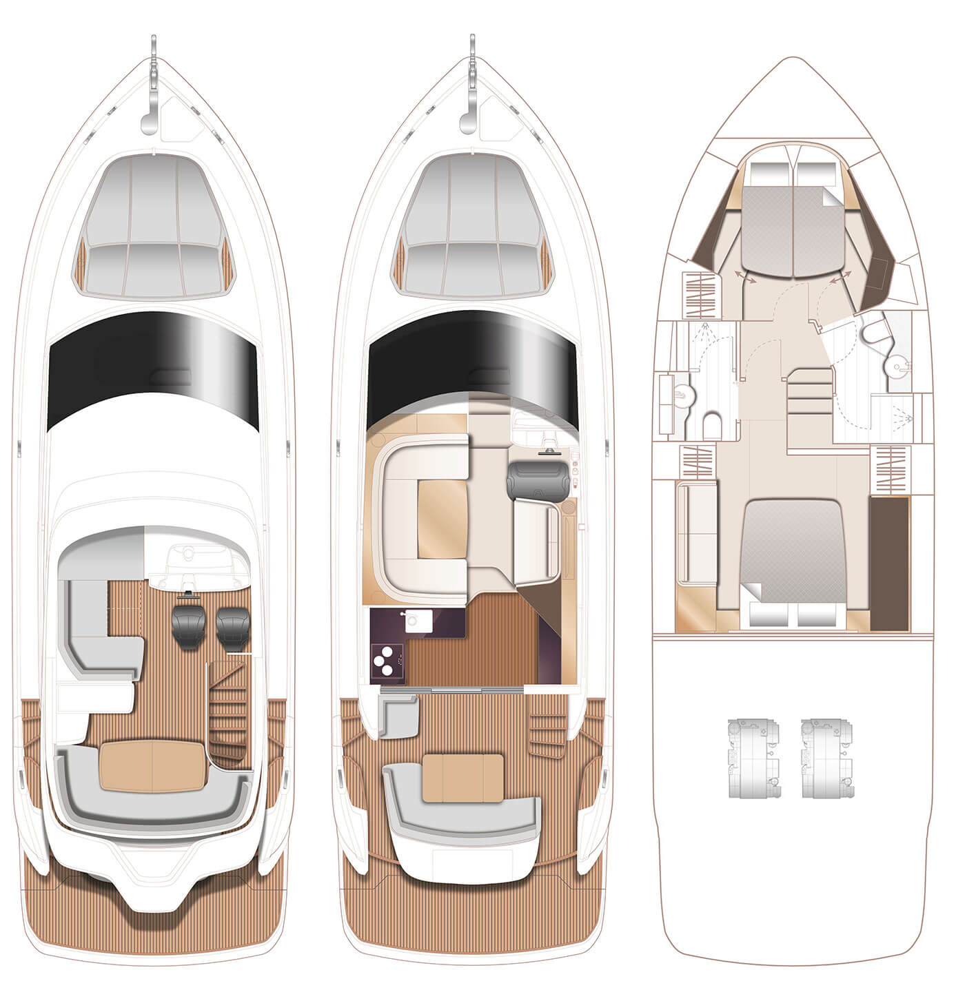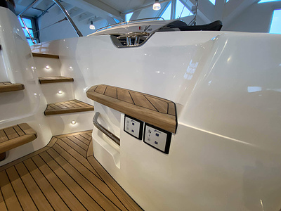 Dubbla Volvo Penta IPS 650 (2 x 480 hk) monteras som standard och inkluderar dubbla joystick och ACP-system (antikorrosionsskydd)