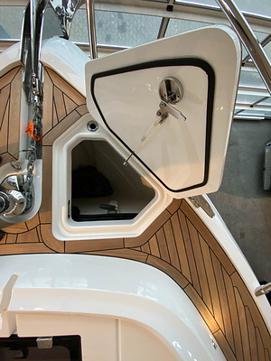Belysning under flybridgekonsolen, extra däcksbelysning till flybridge, sidodäck och fördäck (totalt 8), pop-up lampa vid främre flybridgesoffa"