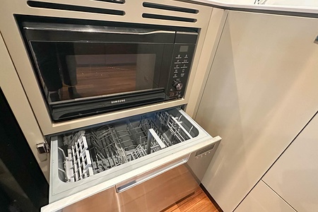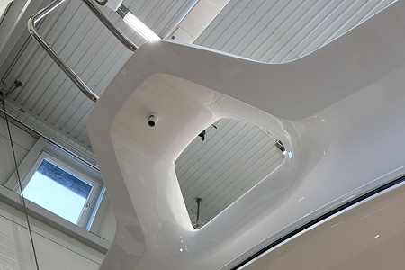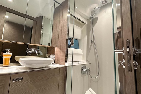 Galley worktops including starboard sideboard are White Solid Surface (satin finish)
