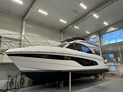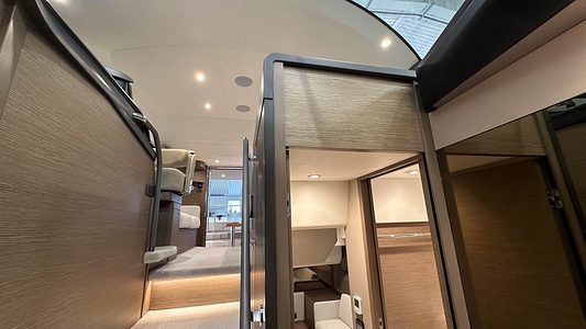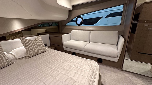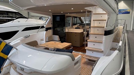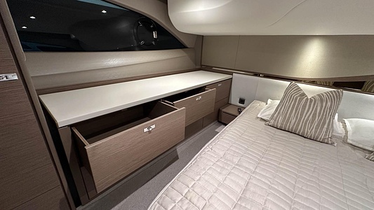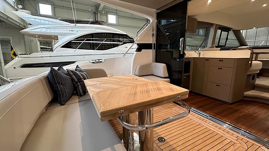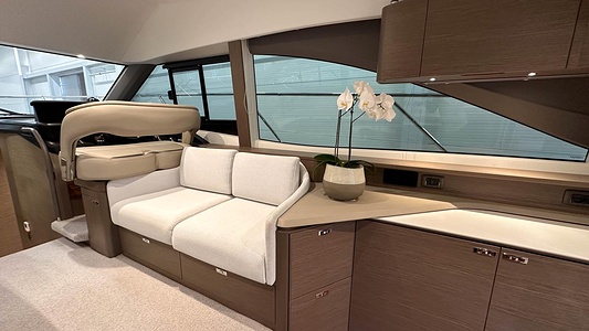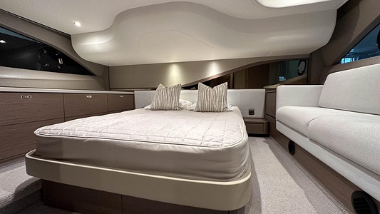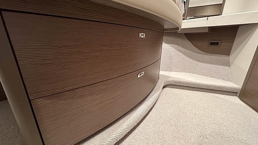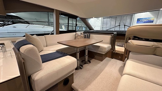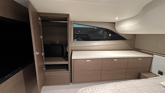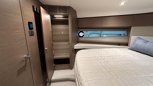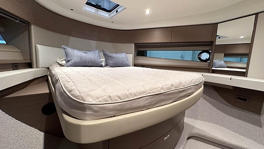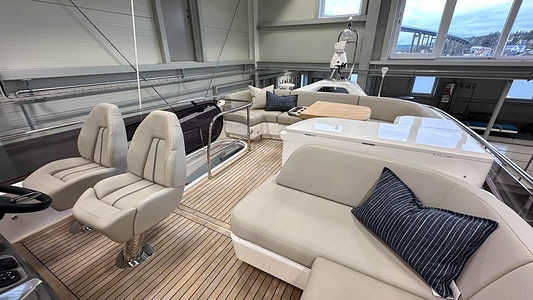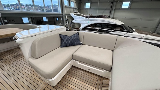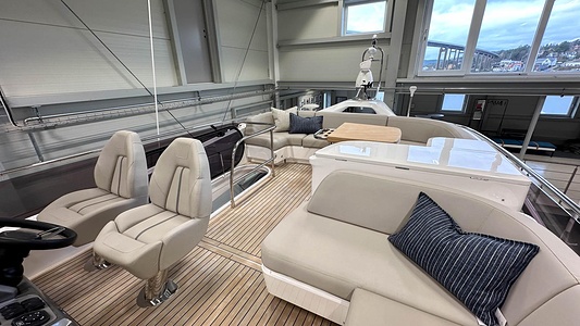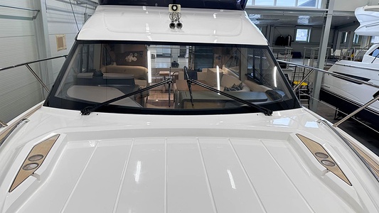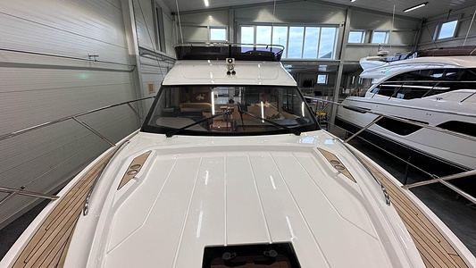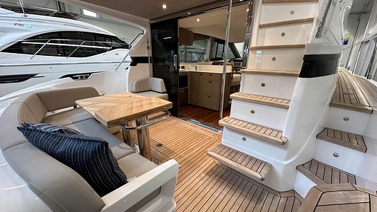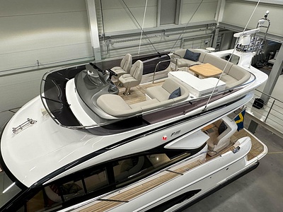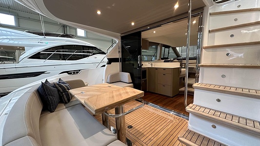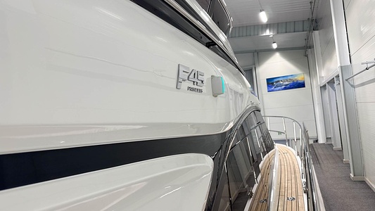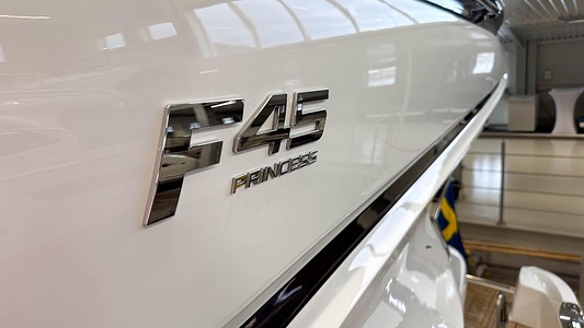 Stunning 2022 model Princess F45 with Silver Oak interior and a massive specification including twin Volvo IPS 650 (480HP) engines / White Hull / Full teak / Generator / Bow thruster / Hi – Lo Platform / Garmin radar / 2+2 Garmin 16″ Displays to lower & upper helm / Garmin VHF / Windscreen demister / Saloon conversion / TV to saloon / TV to aft cabin / Washing machine / Sliding window to portside saloon / Wet Bar with griddle / 5 year engine warranty.
