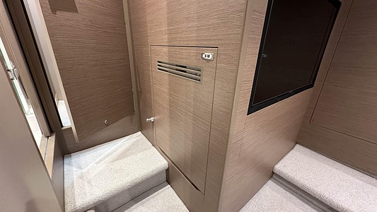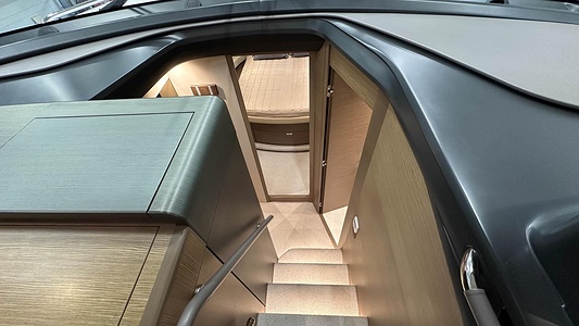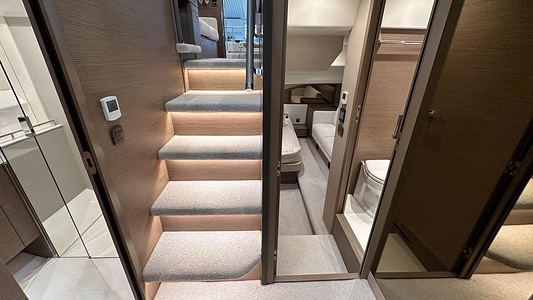 Exterior lighting upgrade package: Low level accent strip lights below flybridge console, additional deck lights to flybridge, side decks and foredeck area (total 8), pop up lantern to flybridge forward dinette (1)”