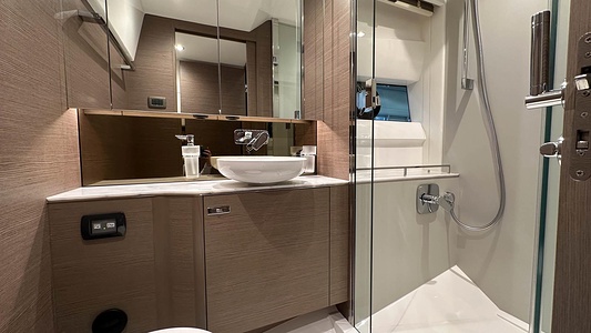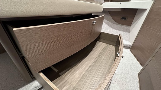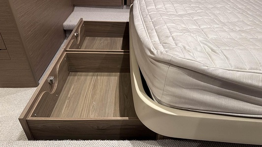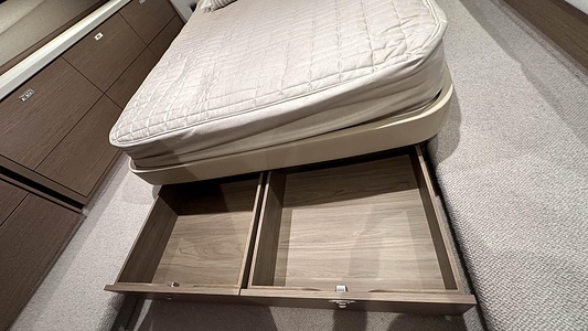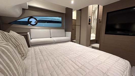 Master cabin – 43” LED TV on a powerlift mechanism with Blu-Ray/CD/DVD player