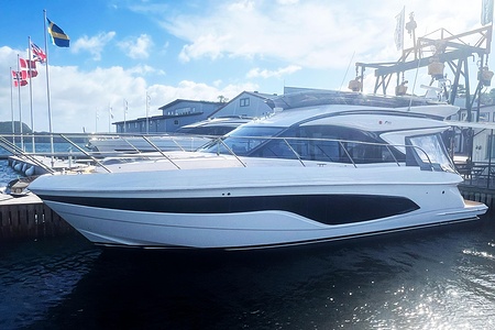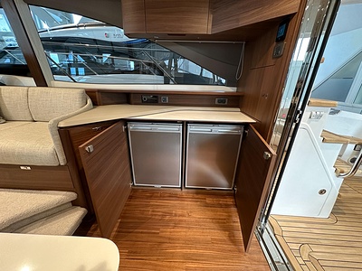 2024 year model • Twin Volvo IPS 650 (2 x 480hp each) diesel engines • Volvo Joystick control • Assisted Docking • Dynamic Positioning System / DPS • Automatic trim system • Variable bowthruster with hold • Hydraulic platform • Walnut interior wood, satin finish • Saloon berth conversion • Heated bathroom floors • Washed/dryer • Dishwasher • Full teak • ONAN generator • BBQ in wetbar • 4x Garmin Glass Cockpit 16 inch chartplotters integrated with Volvo autopilot • Radar • Demist • Heating