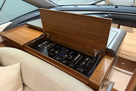Deck saloon – Fusion Apollo MS-RA770 with AM/FM/Bluetooth/DAB/WIFI and external USB. Paired with Focal speakers (2)