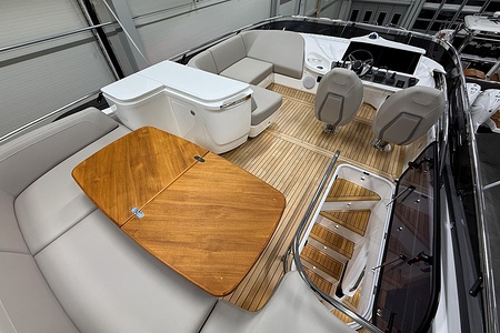 2024 year model • Twin Volvo IPS 650 (2 x 480hp each) diesel engines • Volvo Joystick control • Assisted Docking • Dynamic Positioning System / DPS • Automatic trim system • Variable bowthruster with hold • Hydraulic platform • Walnut interior wood, satin finish • Saloon berth conversion • Heated bathroom floors • Washed/dryer • Dishwasher • Full teak • ONAN generator • BBQ in wetbar • 4x Garmin Glass Cockpit 16 inch chartplotters integrated with Volvo autopilot • Radar • Demist • Heating