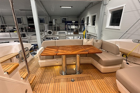 Cover over cockpit sofa and table