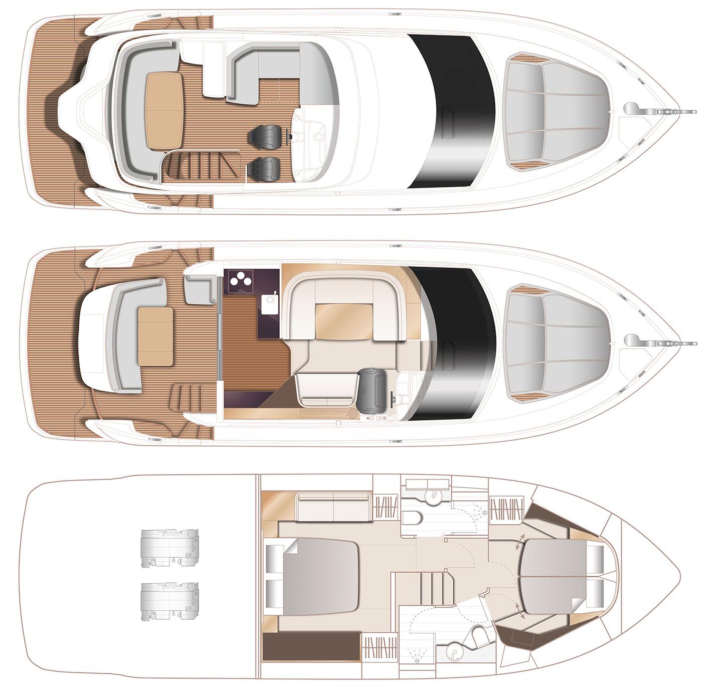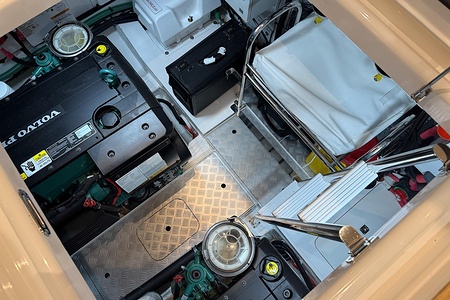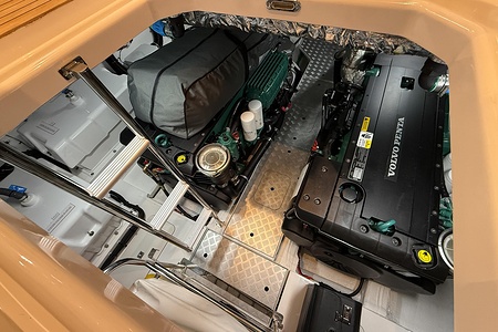 Twin Volvo penta IPS 650 (2 x 480 mhp) are fitted as standard and include dual station joystick controls and ACP (anti corrosion protection) system