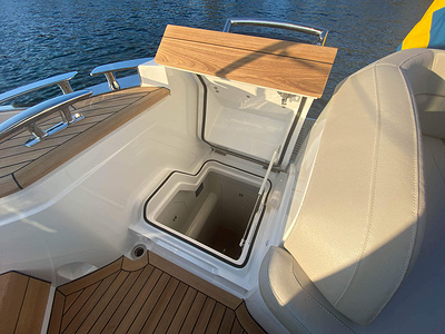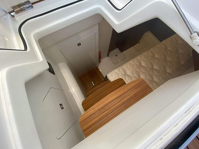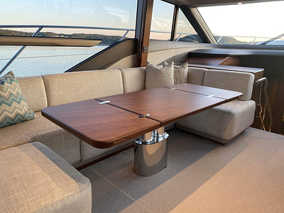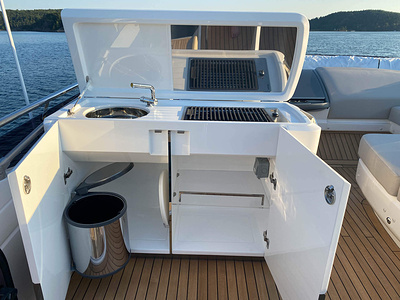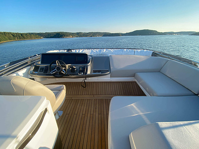 Twin Volvo Penta D13 (2 x 900hp) diesel engines • 2x Volvo Joystick controls • Variable bow thruster with hold function • Hydraulic platform • El-hydraulic bimini • Walnut interior wood, satin finish • Seakeeper stabilizer • Passarelle • Electric winches • 3 double cabins • Heated bathroom floors • Washed /dryer • Dishwasher • Full teak • Generator • BBQ in wetbar • 6x Garmin Glass Cockpit plotters integrated with Volvo autopilot • Radar • Reversing camera • Air conditioning/Heater etc