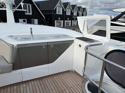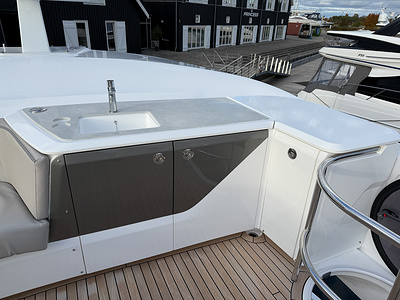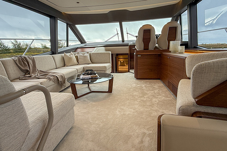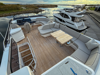 Med sine elegante linjer, rummelige flybridge og sømløse forbindelse mellem inde- og udeområder kombinerer Princess F58 praktisk funktionalitet med raffineret luksus – og sætter en ny standard for flybridge-yachting i sin klasse.