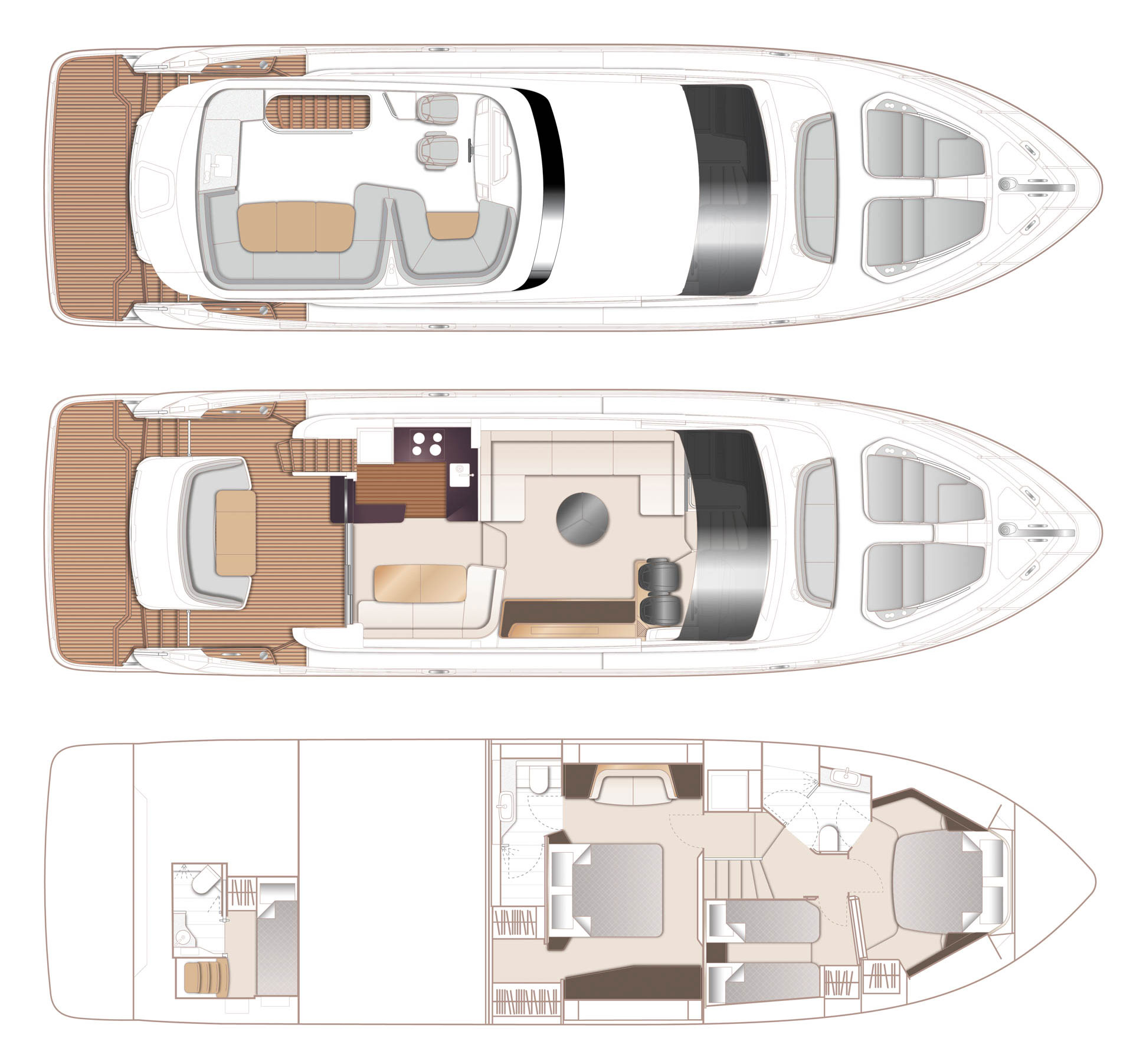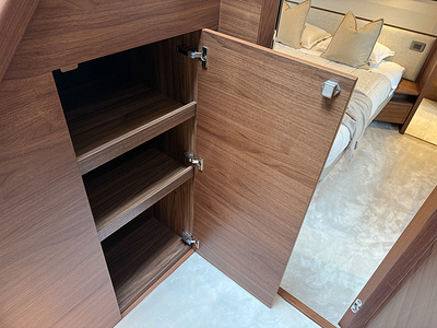 Det eksklusive interiør i satin valnød viser Princess’ velkendte håndværk – varmt, sofistikeret og skabt til livet på havet. Med 4 smukt indrettede kahytter og 3 rummelige badeværelser, inklusive en luksuriøs fuldbredde masterkabine, tilbyder F58 fremragende indkvartering til familie og gæster.