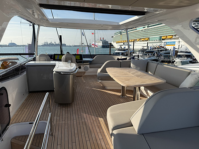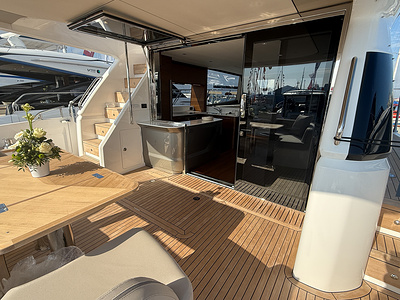 Med sit hardtop-design, rummelige flybridge og sømløse forbindelse mellem ude- og inderum sætter Princess F65 en ny standard for moderne flybridge-yachting.