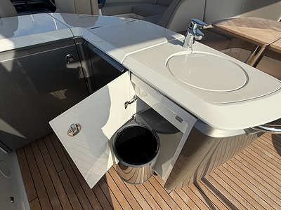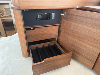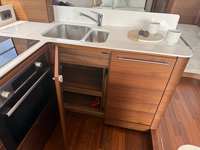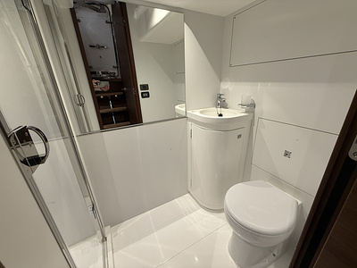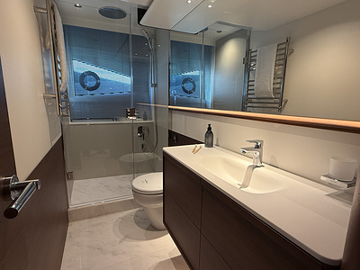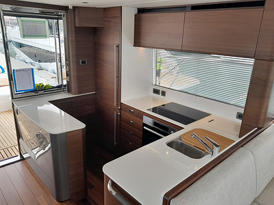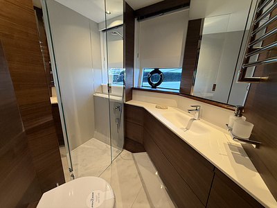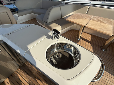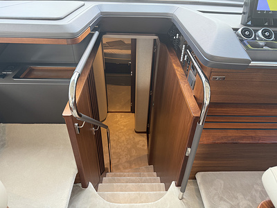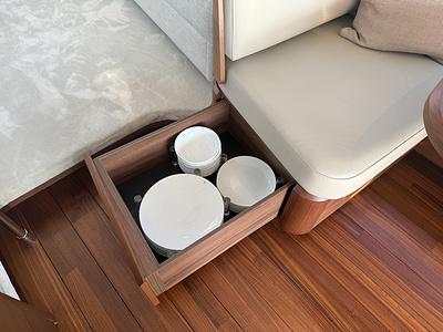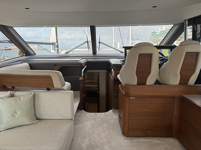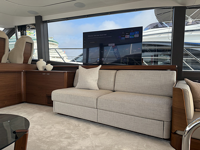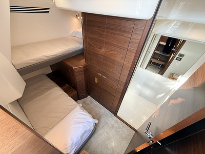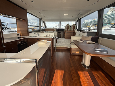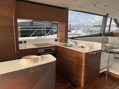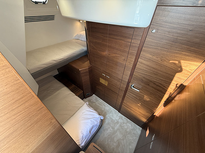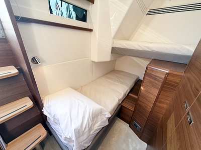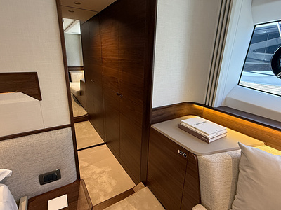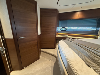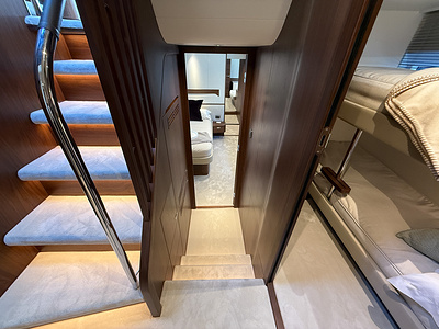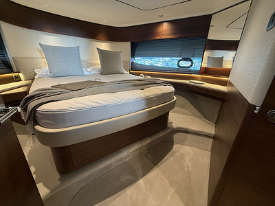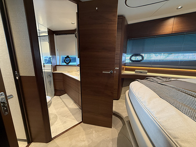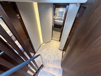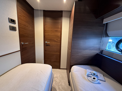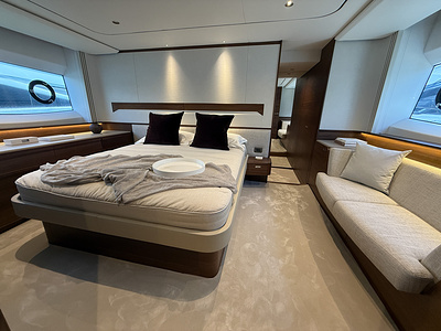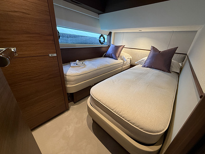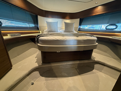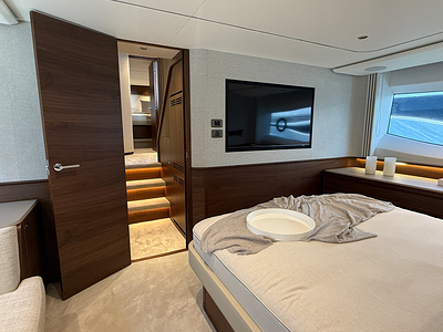 Det elegante interiør i satin valnød viser Princess-håndværket fra sin bedste side, med en varm og moderne atmosfære. Ombord findes 4 dobbeltkahytter til gæster – inklusive en fuldbredde masterkabine – samt en separat besætningskahyt til to, hvilket sikrer komfort og privatliv for alle ombord.