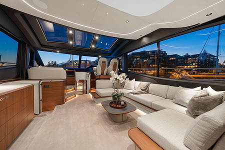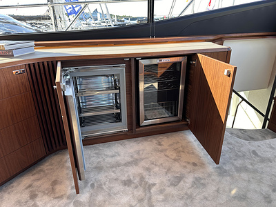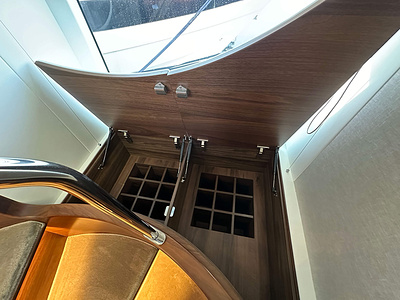Walnut interior wood satin finish (galley, dinette and helm floors are V groove planked walnut as standard)