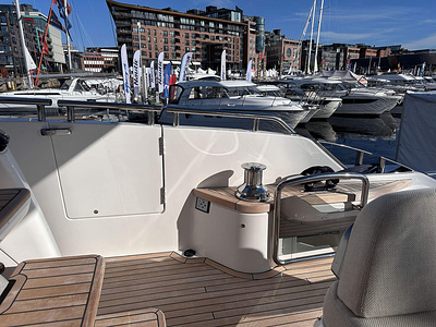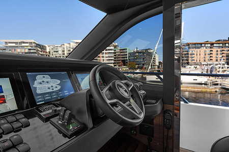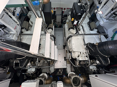 Hydraulic system consisting of separate engine driven hydraulic pumps allowing any system to be supplied with hydraulic power from either engine. Including hydraulic anchor winch and 320kgF hydraulic bow thruster (in place of standard) 240kgF stern thruster and hold function docking system. All with dual station controls