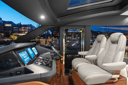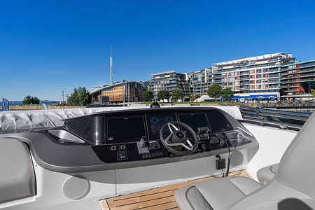 Raymarine Axiom XLI 6 multifunction colour display (two at lower helm and one at upper helm) incorporating Radar/Chartplotter with GPS and 4kwSHD 48″” digital colour open array scanner. Raymarine Evolution autopilot with rate gyro with p70Rs control heads and i70s multifunction instruments (for speed, distance, trip, depth alarm, water temp etc) also fitted at both helms”
