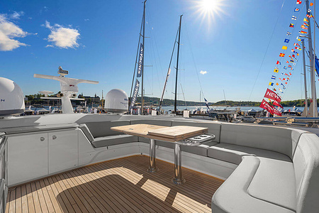 Cockpit seating area – Naim Uniti Atom audio system with Bluetooth, multi streaming capability and dedicated app. Paired with JL Audio waterproof speakers (2)