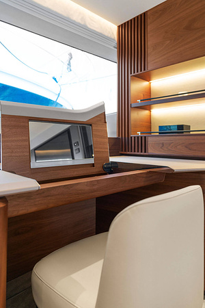 Deck Saloon – 55″” LED TV an power lift mechanism Naim Uniti Atom audio system with Bluetooth, multi-zone streaming capability and dedicated app. Paired with Focal speakers (2) and subwoofer