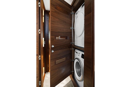 Separate washing machine and condenser dryer machine located below stairs leading to Master Stateroom lobby (in place of standard washer/dryer)