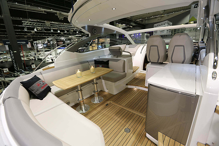 Vi har sålt en begagnad Princess V40 i nyskick utrustad med 2x D6 med joystick-styrning. En härlig volym invändigt med mycket ljusinsläpp med sidorrutor längs hela skrovsidan från förkabin, bäddbar salong och akterkabin där sängarna kan skjutas ihop till en dubbelbädd eller dras isär till två enkelbäddar. Bilderna visar exempel på systerbåtar.